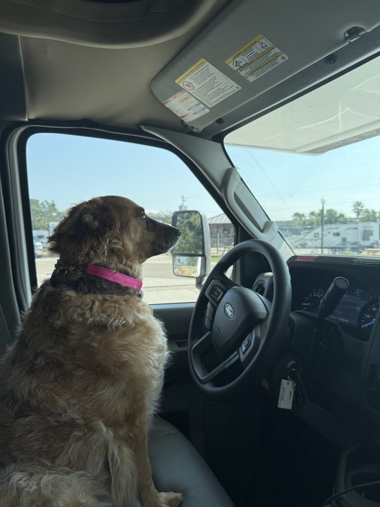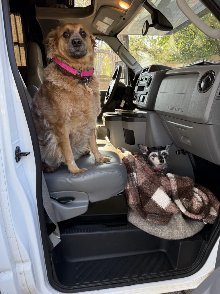 So that preface brings me here. My time. MY time. I needed to own it again and bring it back to myself. I haven’t had much of it. I have spent my life taking care things for a lot of people and pets, but I have put off living my life a bit. SO I got it in my head I wanted to do an RV trip. I have never driven an RV, slept in an RV, or lived in an RV. On this trip I would bring one of my youngest dogs(Mooshu), and my oldest dog (Lanna B). Mooshu is very hesitant, he really hasn’t had to be on his own because he always has a leader in my dog ZuZu to tell him what to do. Lanna B is an old pro at 16. I have only had her 7 of those 16 years, but she is my constant companion and she has been around the block.