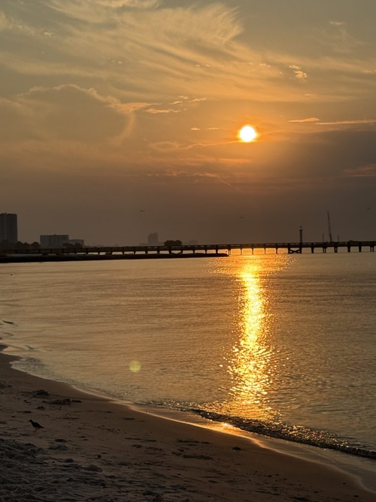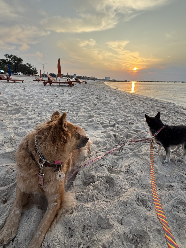 Hooray! Biloxi! I spent all that time learning how to spell Mississippi and now it is actually coming in handy. We arrived around 3 pm and I quickly took advantage of being in civilization again. I took a shower, I bought some much needed toilet paper, this RV place has ice, and we are right next to a Waffle House. Since we had already spent one night in the RV, I realized it is super hard to keep it clean with a furry dog. SO I was able to get an Instacart order from Target complete with a dust buster and fruity pebbles. I then took a Lyft to Beau Rivage casino. I had never been to this casino before. It was pretty insane there. I didn’t hear much winning, but I saw the desperation in people’s faces trying to win. I played a Jumanji giant 3 seater machine.. no luck.. and then caught a Lyft back to the RV for some much needed Popeye’s chicken strips. There was some sort of gathering at the beach that I saw on my way to the casino. Lots of red shirts and red hats. The driver said they had been there all day. Not sure what was going on, but I decided to just keep swimming. I couldn’t choose just 3 pics today. I woke up at 6:30 am and took the dogs across the street to the beach. The beach here is like Galveston. It has a seawall type situation. It was early enough that just us and a guy with his puppet were on the beach. The gentleman first took his puppet down by the water for a little walkie poo, and then politely helped his puppet up the stairs. Mooshu kept an eye on him. I did too:)