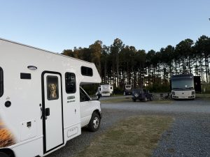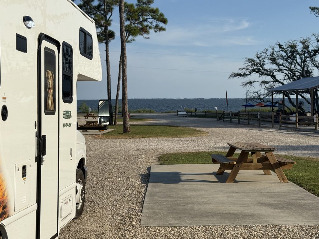Well, I have to say, the Vanessa that planned this trip should have sent a notice to the Vanessa who is on this trip. I have no idea where I am. I am not sure why I booked this place either. It is great; it is just a little bit out of the way for where we end up tomorrow. So tomorrow is like a 6-hour drive, where up to now, everything has been in the 4-hour range. I gloated about that a lot to my brother, but it backfires tomorrow. So we are here in Eastpoint, along with probably 4 other people. I did take the opportunity to shower again today. For some reason, I feel like this luxury could be taken away from me at any point, so I take it when I can get it. I am also judging RV RESORTS (big difference from RV parks) by their bathroom facilities. This one boasted a “Bath House (that) has a premium shower facility that surpasses your traditional campground bathhouse.” I was so excited for this that I moved our space front and center. So under inspection, I do like that they have rooms with a shower, toilet, and sink where you can lock the door. BUT I do feel the communal sharing of a shower that only gets cleaned daily isn’t the right fit for me. I feel like I am constantly scanning for… well… random hairs. I said it. However, so far, this is the best shower facility. I only have one other to compare it to though. Moving on!