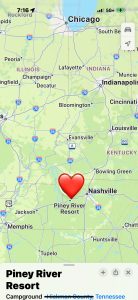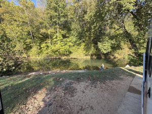 Here we are in the final stretch of this trip. Now we are just hitting RV spots to rest, basically. The drive was SOOOO FARRRR from Virginia. You would think I drove; I was so tired. I was very excited for the spot by the river; it was going to be great.