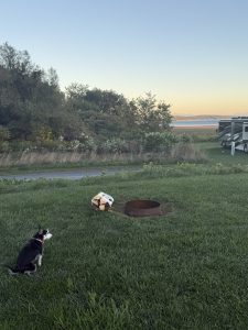 The website is also a bit misleading. There are no lake views, but the website sure does look like there are. It must be a very high drone shot because all I saw was the gas station. The good part about this stop was the weather was a bit cooler. We were able to have a fire in the fire pit. That was great. All of the places I had stopped by while heading north had been pretty warm. This one we were able to light a fire and chill. The laundry facility was all the way back at the office, which was a bit strange since it could have been right in the location of everything else. But regardless, laundry was done. I had never done so much laundry or wanted to shower so much in my life. Part of it is the drive and then wanting to go to bed clean, too. So a lot of times, I shower twice. RV life, especially in these close quarters with animals, requires cleaning ALL of the time.